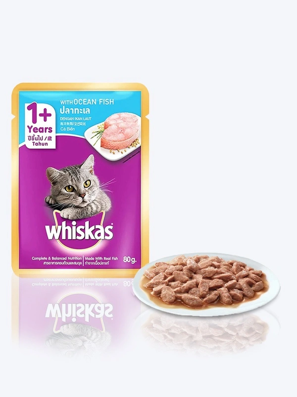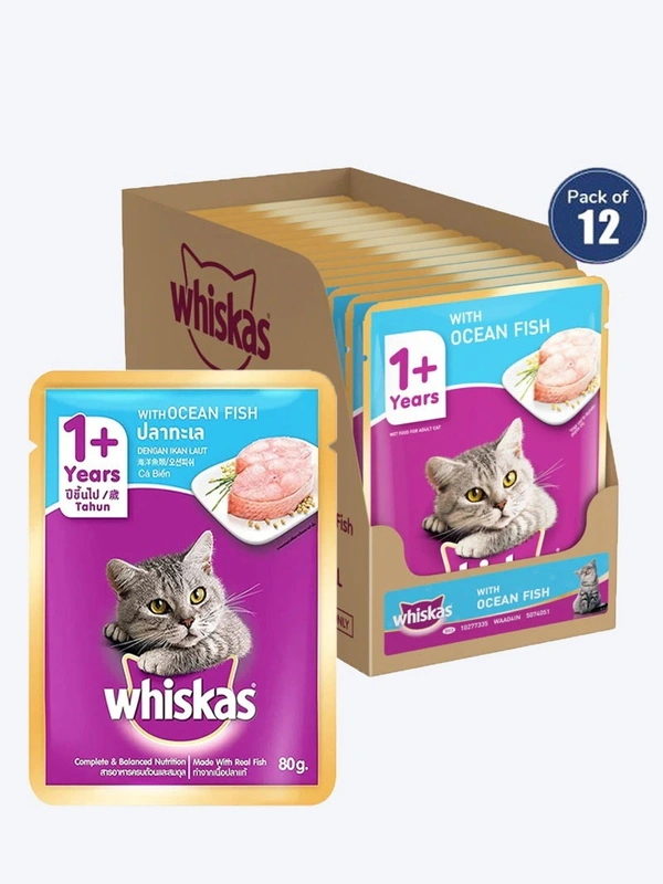 Whiskas Adult Wet Cat Food Ocean Fish in Gravy 80gm Pack Of 12